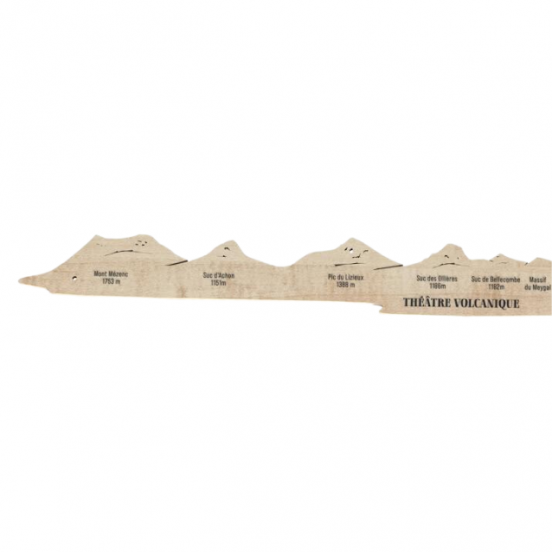 Une belle skyline en bois de chêne représentant les sucs et les monts visibles d'Yssingeaux.