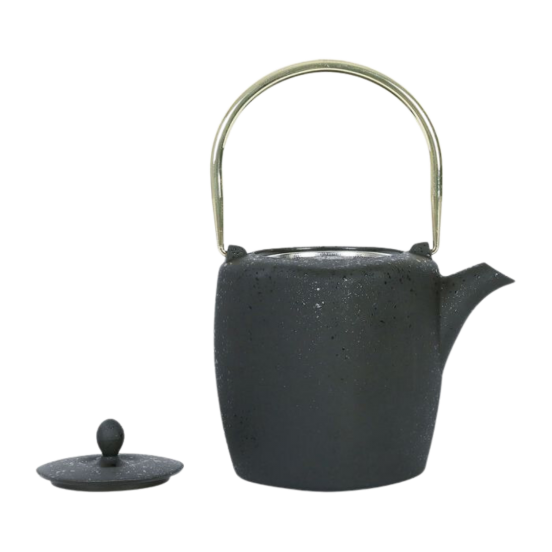 Dégustez votre thé dans cette théière noire et dorée en fonte émaillée avec son filtre en acier inoxydable pour faire infuser directement le thé à l'intérieur.