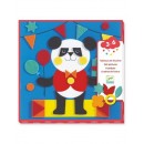Le coffret contient 4 cartes (20 x 20 cm), 114 gommettes de feutrines préencollées de 5 couleurs différentes et un livret explicatif.