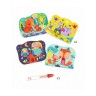 Le coffret contient un support4 illustrations souples et un crayon magique.