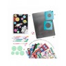 Ce coffret contient une plaque métallique, 2 cadres magnétiques, 5 roues à 3 trous, 5 crayons gels, 30 pages illustrés sur 10 thèmes différents et 1 livret explicatif pas à pas en couleurs.