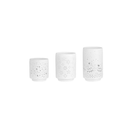Idéal pour sublimer une table de fête, une console ou un rebord de fenêtre, ce trio apporte chaleur, poésie et élégance à la saison. Chaque photophore, avec sa silhouette sobre et ses motifs stylisés, invite à la rêverie et aux instants partagés.