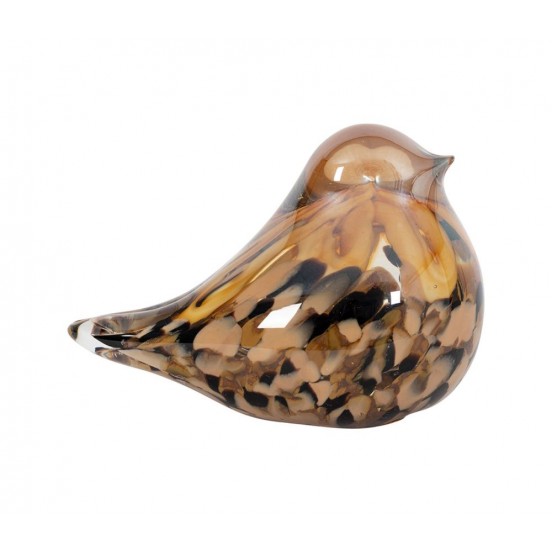 Ajoutez une note élégante et poétique à votre bureau ou à votre intérieur avec ce presse-papier moineau en verre brun et doré.