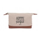 Cette trousse fusionne humour et fonctionnalité : couleur beige et marron, message à l’avant (“Homme Parfait”) qui fait son petit effet. Assez spacieuse pour tous vos essentiels de soin, rasage, cosmétiques ou produits de douche sans faire de compromis sur le style.
