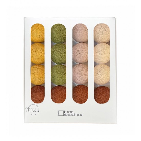 Couleurs des boules : Camel, Eau de rose, Écru, Vert de gris