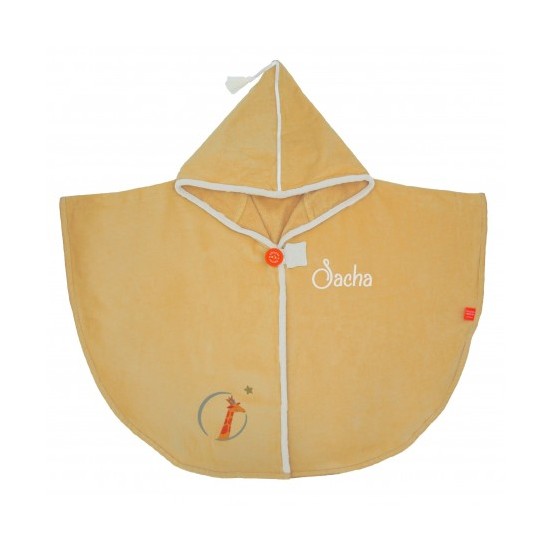 Faites de l’heure du bain un moment doux et ludique avec la cape de bain "Girafe Vanille". En éponge velours couleur vanille, elle est décorée d’une broderie girafe, parfaite pour émerveiller les tout-petits.
