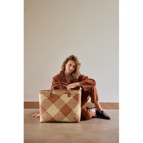 Ce grand panier, tissé à la main à partir de plastique recyclé, séduit par son design audacieux et sa teinte vitaminée. Ses poignées en simili cuir apportent confort et élégance, tandis que sa capacité en fait un compagnon idéal pour vos virées shopping, escapades ou journées bien chargées.