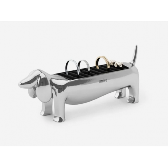 Ce mini chien fait partie de ces objets qui déclenchent un “aww” immédiat. Avec sa silhouette fine, son look chic et sa finition brillante, le Porte-bagues Dachsie transforme votre rangement de bagues en un moment beaucoup plus mignon que prévu. Il accueille jusqu’à 9 bagues sans jamais les rayer grâce à sa base en velours toute douce.