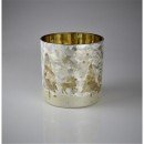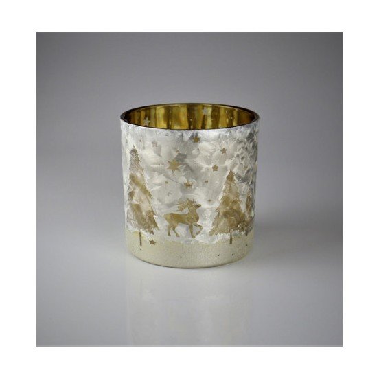 Élégant, lumineux et plein de charme, ce photophore argenté et doré diffuse une lumière douce et scintillante qui transforme instantanément votre espace. Son fini métallisé joue subtilement avec les reflets de la flamme, créant une ambiance feutrée et festive — parfaite pour les soirées d’hiver ou les tables de fête.
