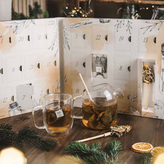 Ce grand calendrier de l’Avent est composé de 24 tisanes d’exception, dont 1 bouquet de fleurs à infuser et partager le soir de Noël.