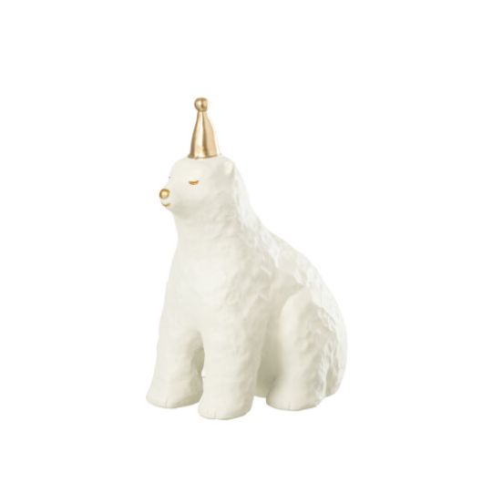Cet adorable ours polaire coiffé d’un chapeau doré apporte une touche festive et lumineuse à ta déco d’hiver. Tout en douceur avec sa texture mate en poudre de chaux et ses détails dorés élégants, il incarne la magie des fêtes avec humour et tendresse.