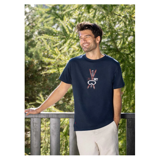 Le “Ski Set” de Maison FT, c’est le combo parfait entre confort, style rétro et fabrication responsable. En coton bio ultra doux, ce t-shirt bleu marine arbore un visuel inspiré des vacances d’hiver et de la bonne humeur des pistes.
