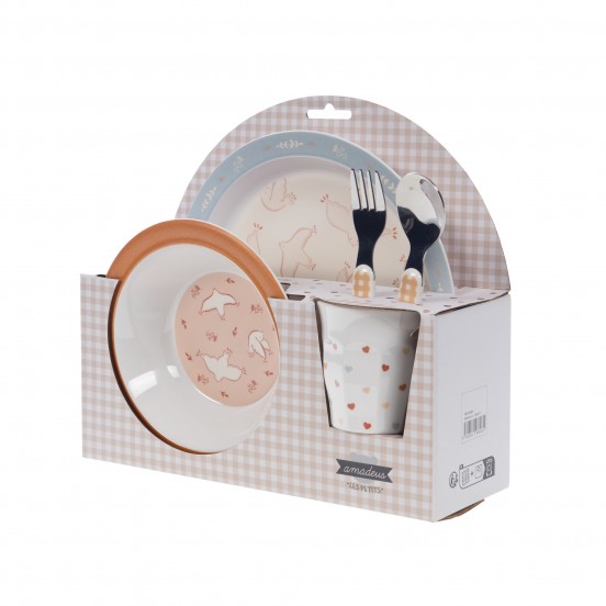 Ce coffret repas enfant combine 5 pièces en mélamine, inox et ABS, idéal pour les petits gourmets. Compact et léger, il se transporte facilement à l’école, en sortie ou à la maison.