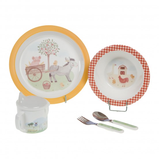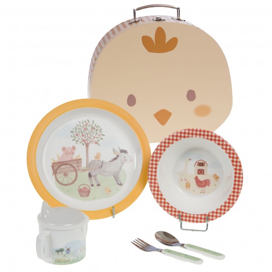 Ce coffret repas enfant combine praticité et design ludique. Composé de 5 pièces en mélamine, inox et ABS (assiette, bol, gobelet et couverts), il garantit robustesse, sécurité et facilité d’utilisation pour les repas à la maison ou en sortie.