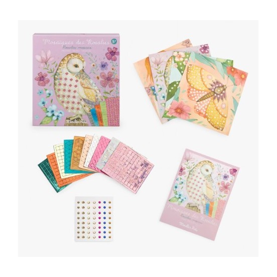 Entrez dans le monde bucolique et poétique des Rosalies. Ce coffret créatif invite les enfants à donner du relief et de l'éclat à cinq magnifiques illustrations. À l'aide de petites mosaïques adhésives et de strass étincelants, chaque carte devient une œuvre d'art unique, prête à décorer une chambre ou à être offerte en cadeau.