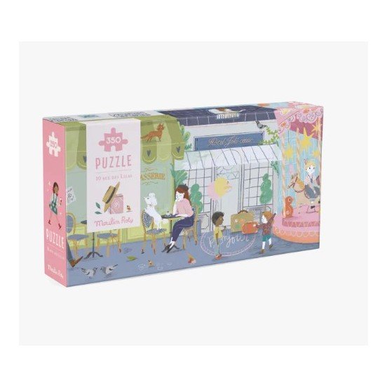 Bienvenue au 10 rue des Lilas, l'adresse la plus animée de la capitale ! Ce puzzle panoramique de 350 pièces propose un format spectaculaire de plus d'un mètre de long. Les enfants (et les plus grands) s'amuseront à reconstituer cette rue fourmillante de détails : des boutiques de proximité, des balcons fleuris et les célèbres "Parisiennes" qui se retrouvent pour discuter.