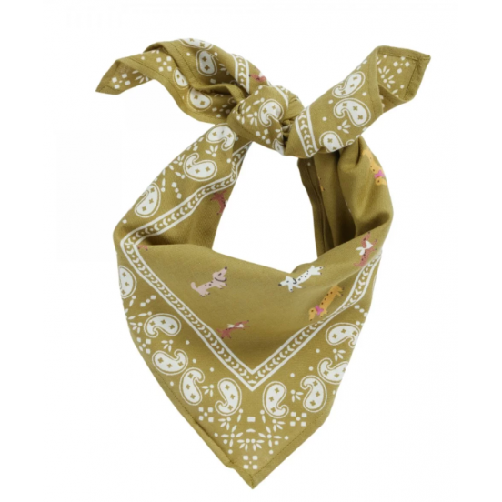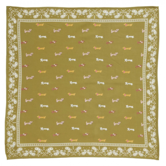 Modèle : Petit foulard Indien Teckel Olive