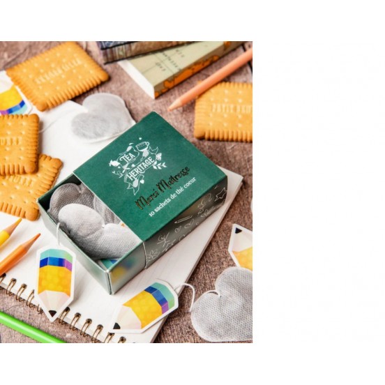 Dites-le avec du thé ! Ce coffret exclusif a été imaginé pour remercier celles qui accompagnent nos enfants au quotidien. À l’intérieur, 10 sachets de thé en forme de cœur, confectionnés avec amour et minutie, prêts à infuser un message de reconnaissance.