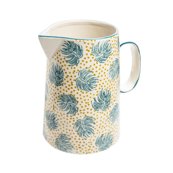 Sa polyvalence est son plus grand atout. Idéal pour servir de l'eau, des jus de fruits frais ou des thés aromatiques, il se transforme également en un vase de charme pour vos bouquets de fleurs fraîches. Fabriqué en grès robuste, il allie la durabilité d'une pièce artisanale à la praticité d'un objet quotidien, s'intégrant harmonieusement à tous les styles de décoration.