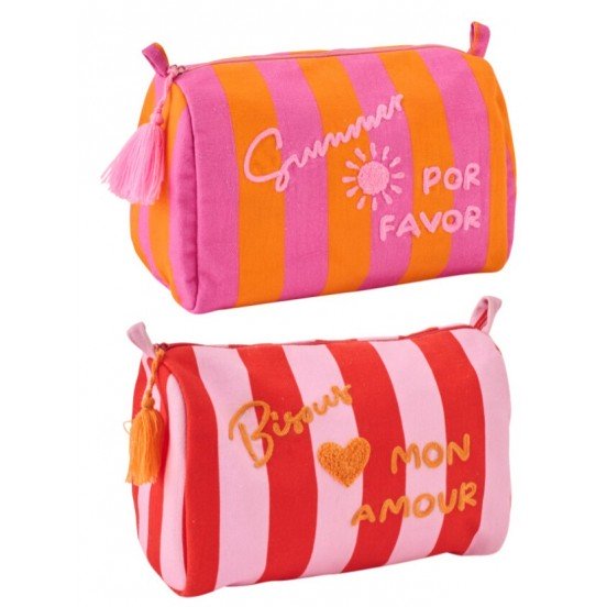 Un petit mot doux à emporter partout ! Cette trousse de toilette arbore le message tendre "Bisous mon amour", une attention délicate qui transforme votre sac de voyage en un écrin de bienveillance. Avec sa typographie élégante et son design épuré, elle s'adapte à tous les styles, du plus classique au plus moderne.