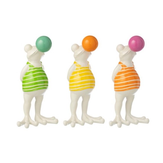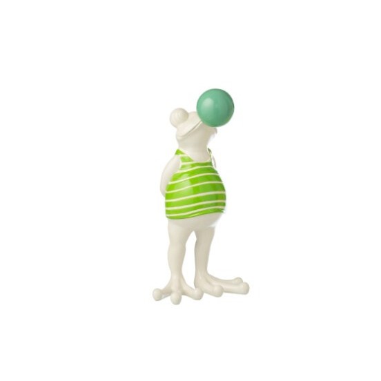 L'impertinence s'invite dans votre déco ! Cette figurine Jolipa met en scène une grenouille décontractée, en train de faire une énorme bulle de chewing-gum (ou d'eau !). Avec son coloris vert vibrant et sa bulle contrastée, elle apporte immédiatement un sourire et une note de fraîcheur à n'importe quelle pièce.