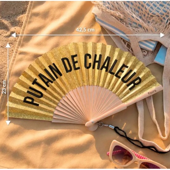 Avec sa finition pailletée qui brille sous le soleil et son message plein de franchise, c'est l'accessoire de survie ultime pour les festivals, les mariages en plein mois d'août ou les terrasses surchauffées. Alliez l'utile à l'agréable (et à l'humour) d'un simple coup de poignet !
