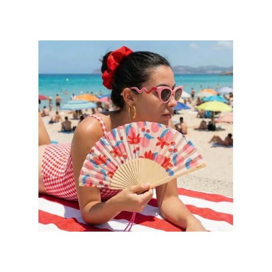 Évadez-vous le temps d'un battement de cil (ou de poignet) ! Cet éventail Fisura capture la beauté indisciplinée des prairies en fleurs. Avec ses illustrations délicates de coquelicots, marguerites et herbes folles sur un fond frais, il apporte une touche de poésie et de douceur à vos journées les plus chaudes.