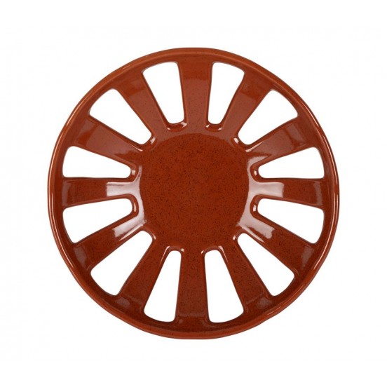 Avec son diamètre de 23 cm et sa hauteur de 5 cm, elle est idéale en centre de table, pour présenter des fruits ou même en objet déco sur une console. Le grès lui donne un aspect authentique et une belle robustesse pour un usage quotidien.