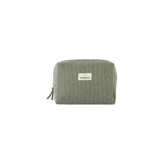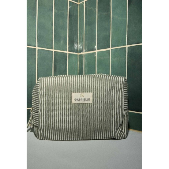 La douceur minérale s'invite dans votre valise. La trousse de toilette Gabrielle Paris se décline dans le motif Rayures Quartz, un vert délicat qui évoque la sérénité et le soin. Alliant l'esthétique du coton à une technicité indispensable, cette trousse est la complice idéale de vos rituels beauté. Que ce soit sur le rebord d'un lavabo ou au fond de votre sac de voyage, elle rayonne par son élégance discrète et sa praticité absolue.