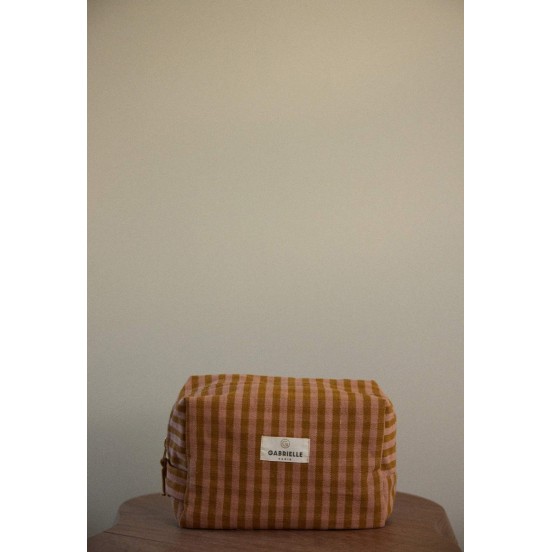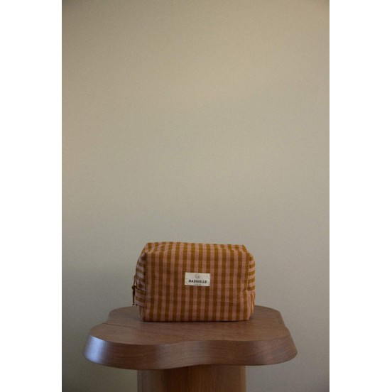 Le charme rétro revisité avec une douceur naturelle. La trousse de toilette Gabrielle Paris se pare du motif Vichy Glaise, un imprimé à carreaux iconique décliné dans une nuance organique terreuse. Que ce soit sur le rebord d'un lavabo ou au cœur de vos bagages, elle incarne parfaitement l'art de vivre à la française : simple, chic et authentique.