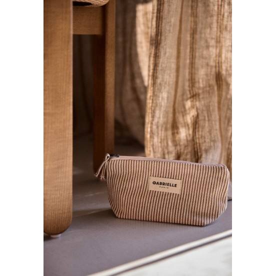 Son format optimisé en fait l'alliée parfaite de votre sac à main ou de votre bagage cabine. Que ce soit pour une retouche beauté au bureau ou pour compartimenter vos accessoires high-tech (chargeurs, écouteurs), elle allie une esthétique intemporelle à une fonctionnalité sans faille. Avec ses rayures sobres et son zip raffiné, elle transforme le rangement en un véritable geste de style "slow-living".