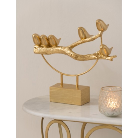 Apportez une touche de majesté à votre intérieur avec cette pièce de décoration signée Jolipa. Cette sculpture représente un oiseau délicatement posé sur une branche aux détails hyper-réalistes. Entièrement revêtue d'une finition dorée, elle capture la lumière pour illuminer vos buffets, consoles ou bibliothèques.