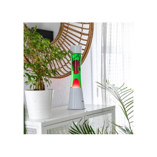 Osez le contraste absolu ! Cette lampe Fisura associe un liquide vert translucide à une cire rose néon pour un effet visuel saisissant.