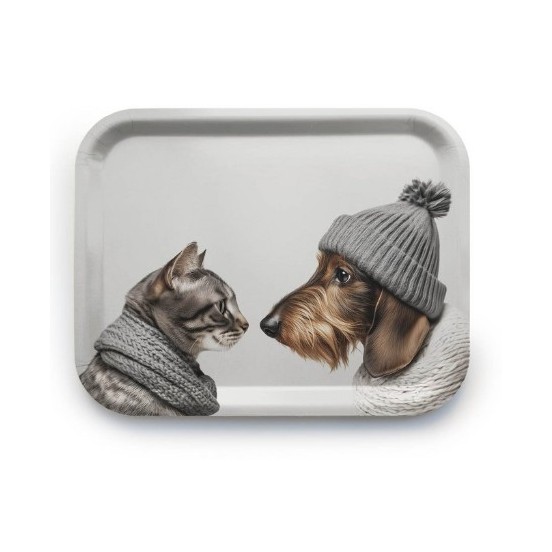 Le meilleur des deux mondes réuni sur un plateau ! Le modèle Cat & Dog est le manifeste de cette collection haute en couleur. Entre design avant-gardiste et amour des animaux, ce plateau en bois de bouleau apporte une signature visuelle forte à votre intérieur. Ses illustrations, à la fois naïves et ultra-modernes, célèbrent nos compagnons préférés avec un humour irrésistible.