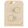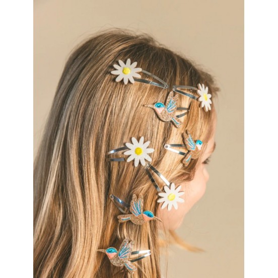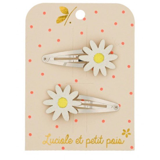 Faites souffler un esprit de liberté dans les cheveux de vos enfants avec le duo de barrettes marguerites. Ces deux petites marguerites au cœur doré et aux pétales étincelants sont une véritable ode à la nature et à la douceur. Que ce soit pour retenir une mèche rebelle ou pour sublimer une coiffure de fête, elles apportent une touche bucolique irrésistible.