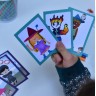 FABRIQUE TON JEU ET JOUE : Colorie les cartes des personnages et donne-leur des sorts grâce aux autocollants. Imagine et crée tes joker en dessinant et/ou en utilisant les gommettes fournies.