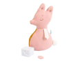 Un joli coussin musical pour fredonner, réconforter ou s'endormir. Lange rose d'un côté, et lange moutarde de l'autre. Il est brodé et cousu d'une petite queue en fourrure. La boîte à musique s'enlève pour pouvoir le passer en machine.
