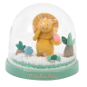 Une jolie boule à neige Moulin Roty avec figurine en résine et socle en plastique où Paprika le lion regarde les flocons pailletés tomber sur sa jolie crinière !